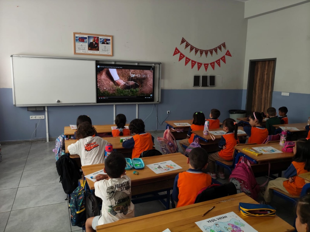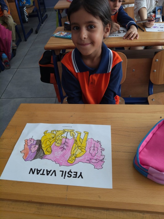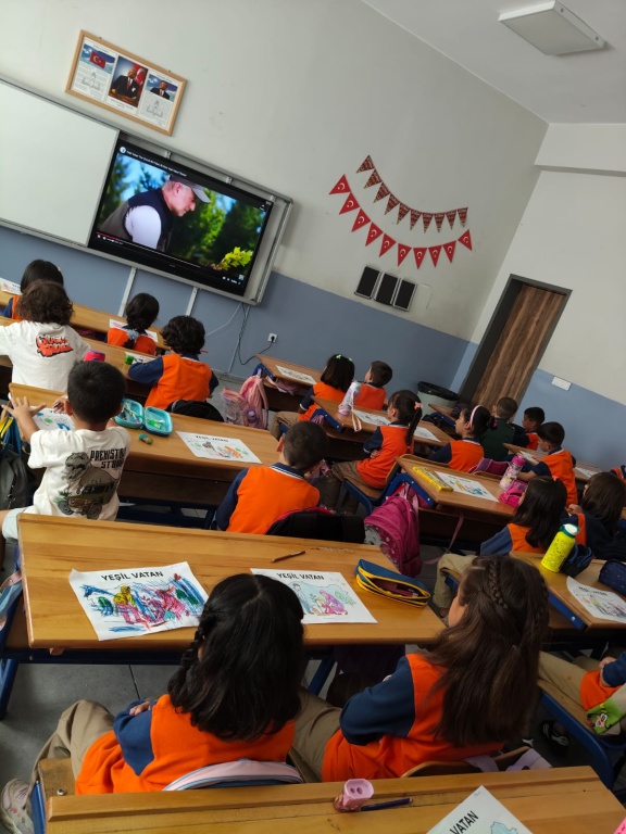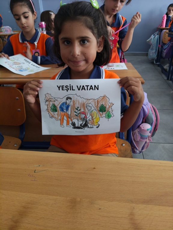 Öğrencilerimize Eylül ayının ilk dersinde “Yeşil Vatan” konulu videolar izlettirilerek çevre bilinci kazandırılmıştır.“Yeşil Vatan-Benim Okulum Geleceğe Çare” etkinlikleri kapsamında, öğrencilerimize, ormanların oksijen kaynağımız olduğu, orman yangınlarını önlemek için alınabilecek tedbirlerin neler olduğu, çevre bilincinin küçük yaşlardan itibaren kazandırılmasının önemi, sürdürülebilir bir gelecek için tüm bireylerin üzerlerine düşen görevleri yapması gerektiği, çevremize karşı sorumluluklarımızın neler olduğu konusunda bilgilendirme çalışması yapıldı. Okulumuz öğrencileri "YEŞİL VATAN Benim Okulum Geleceğe ÇARE" Projesi Eylül ayı etkinliklerini "Tohum,Toprak ve Temiz Hava" teması kapsamında . sınıflarında izledikleri "YEŞİL VATAN " konulu videolardan öğrendiklerini, Görsel Sanatlar derslerinde yaptıkları boyama ve afiş çalışmaları , Müzik dersinde hep birlikte söyledikleri ve öğrendikleri " Tohumlar Fidana" isimli şarkı ile pekiştirdiler.